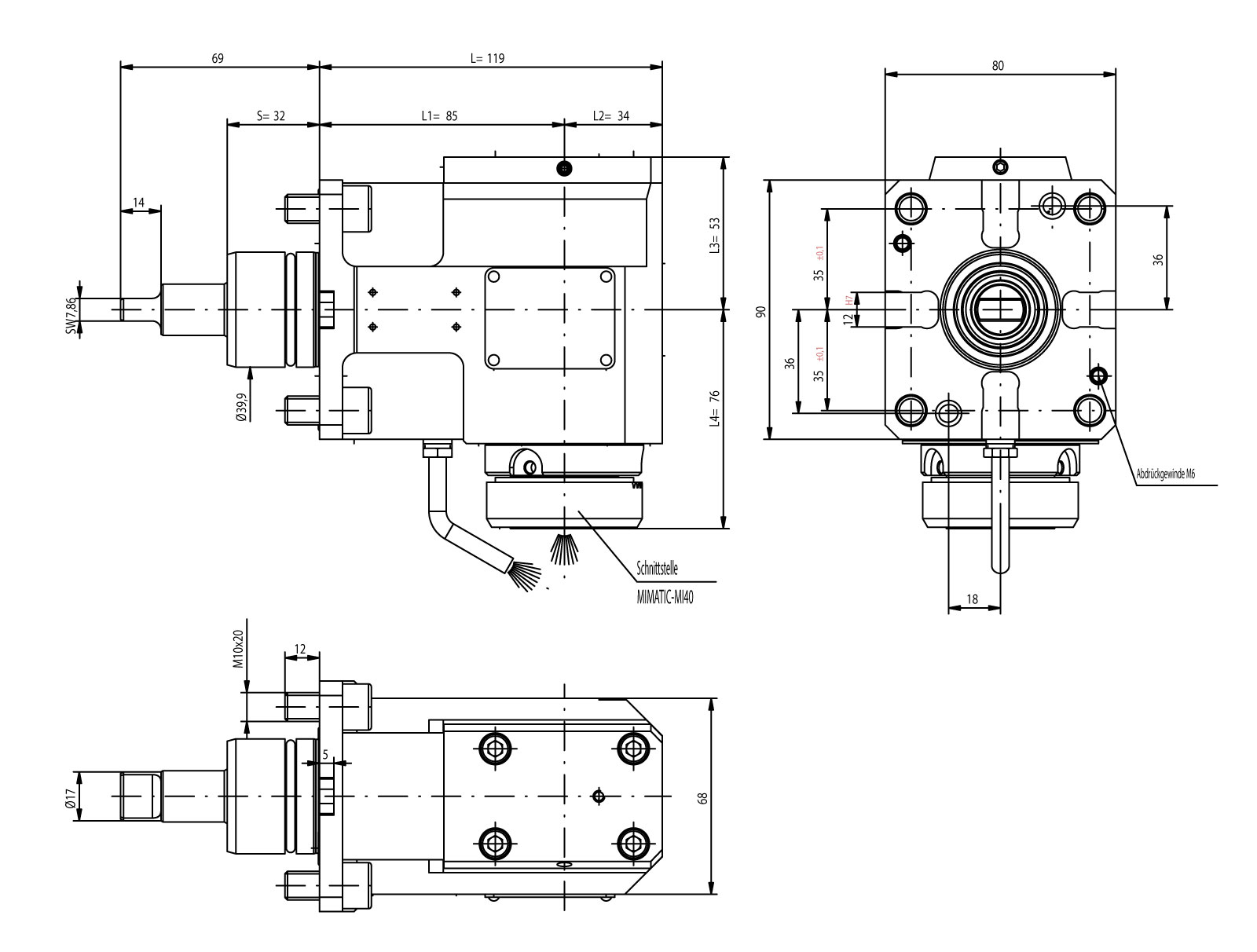 Produktinformationen "Angetriebenes Werkzeug BMT40 Winkel-Einheit 90°"