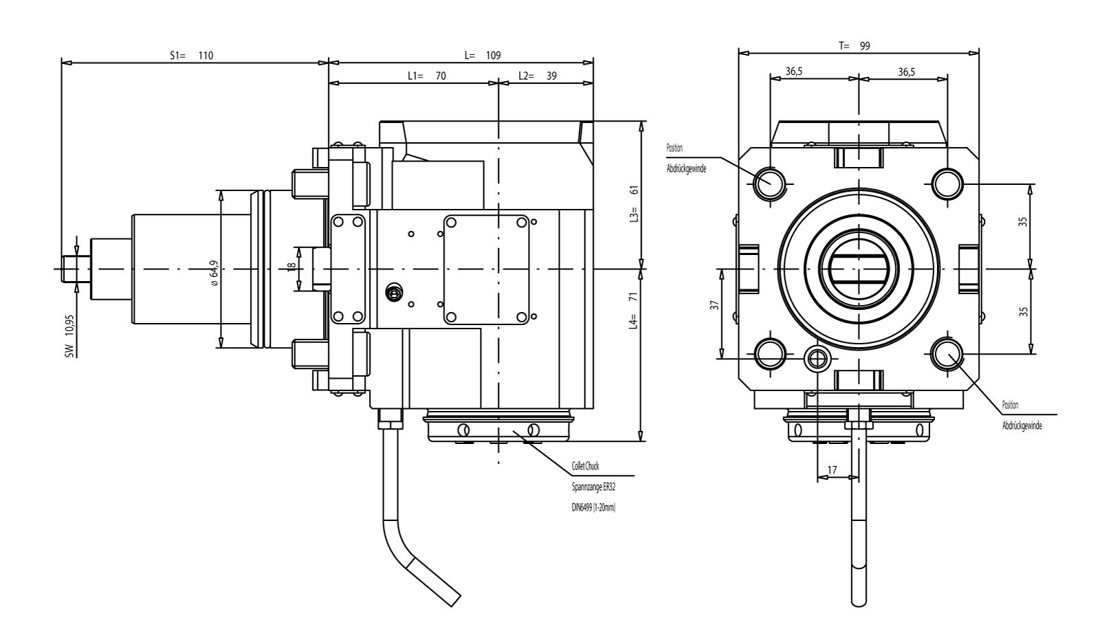 Produktinformationen "Angetriebenes Werkzeug BMT65 Winkel-Einheit 90°"
