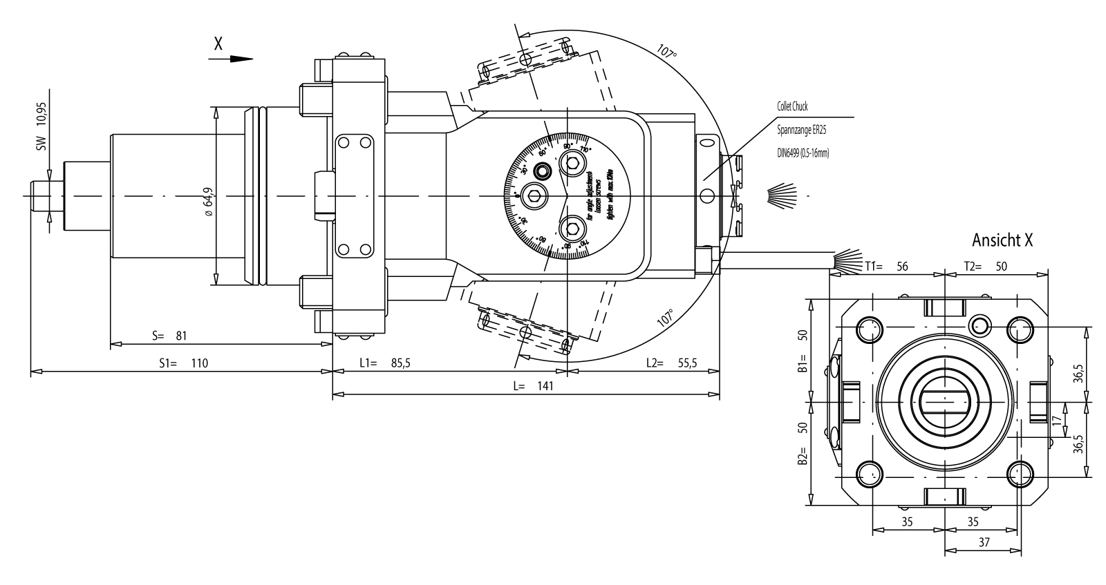 Werkzeugtyp: Winkelschwenkeinheit +/- 107°