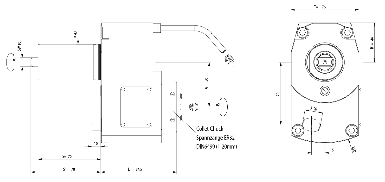 Produktinformationen "Angetriebenes Werkzeug VDI40 Gerade Einheit, versetzt"