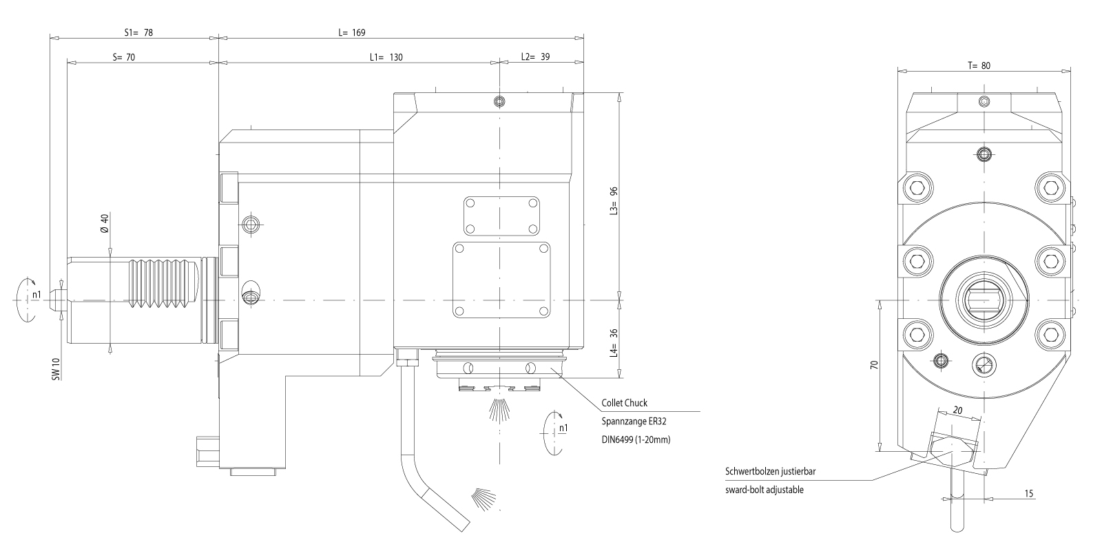 Überschrift: Angetriebenes Werkzeug VDI40 Winkel-Einh