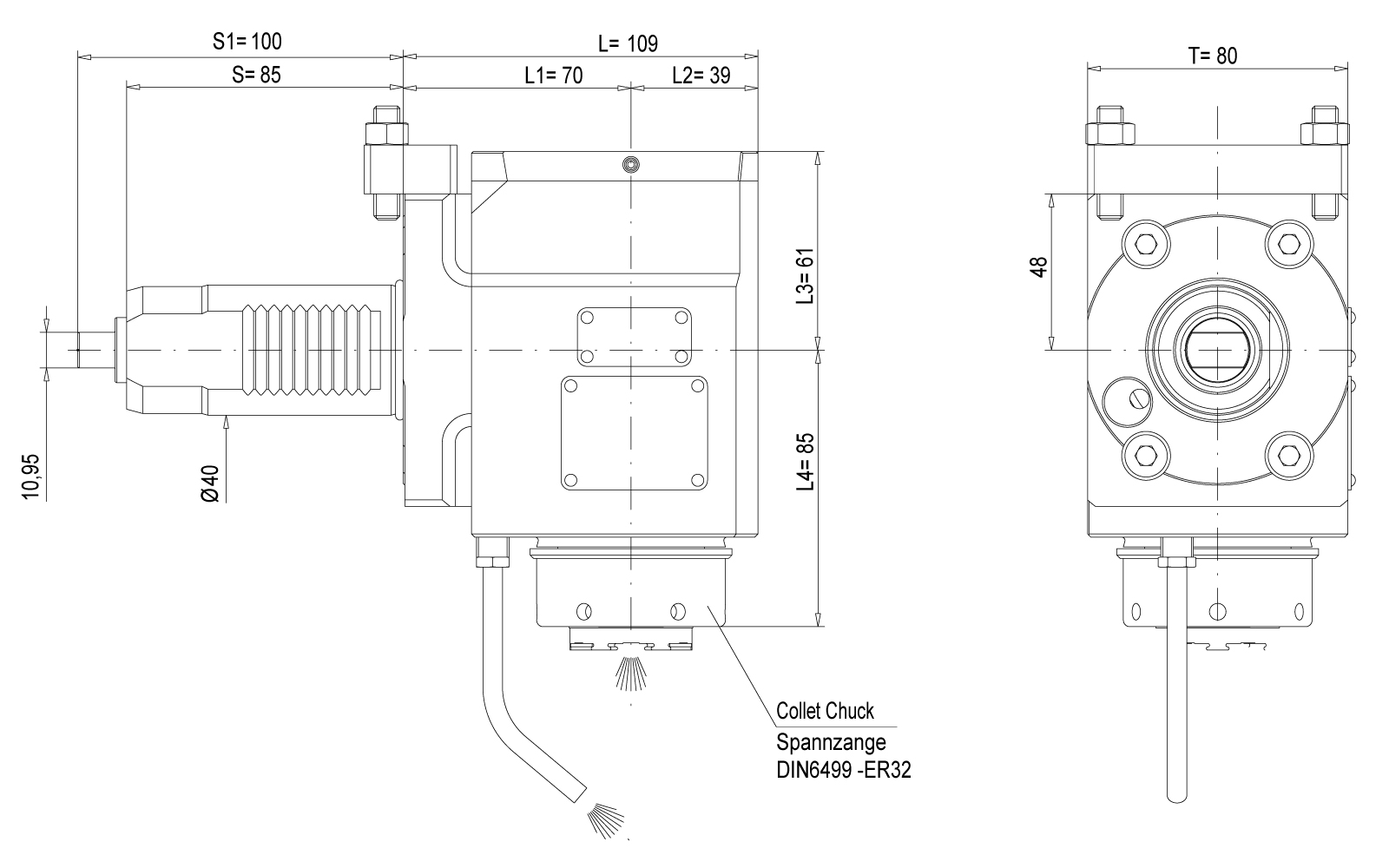 | Lage der ER Spannmutter: | Innenliegend |
