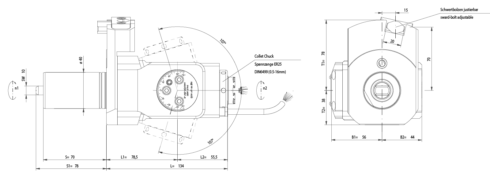 Werkzeugtyp: Winkelschwenkeinheit +/- 107°