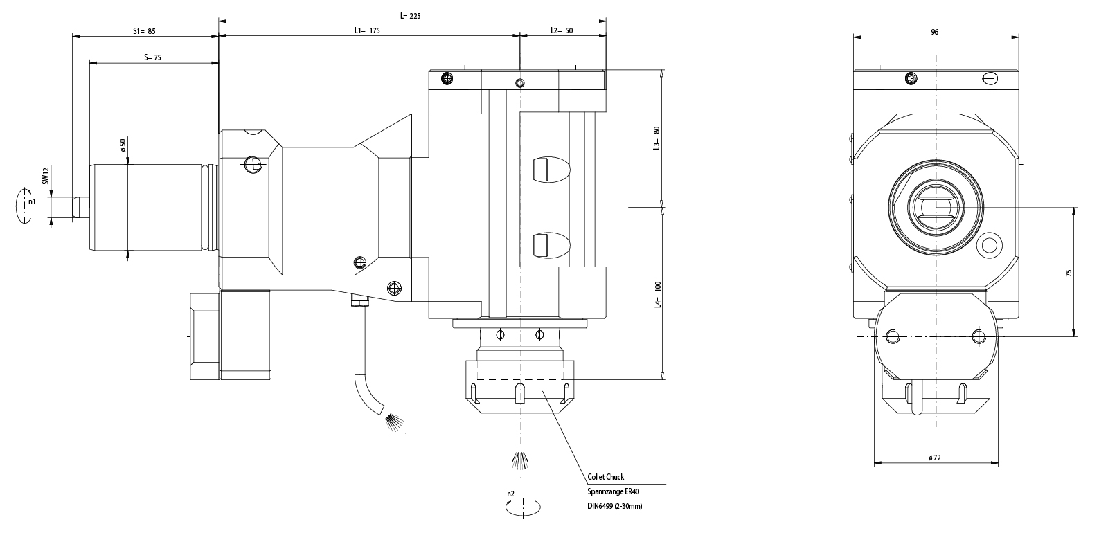 Ausrichtung: Spindeleinheit 180° umsetzbar