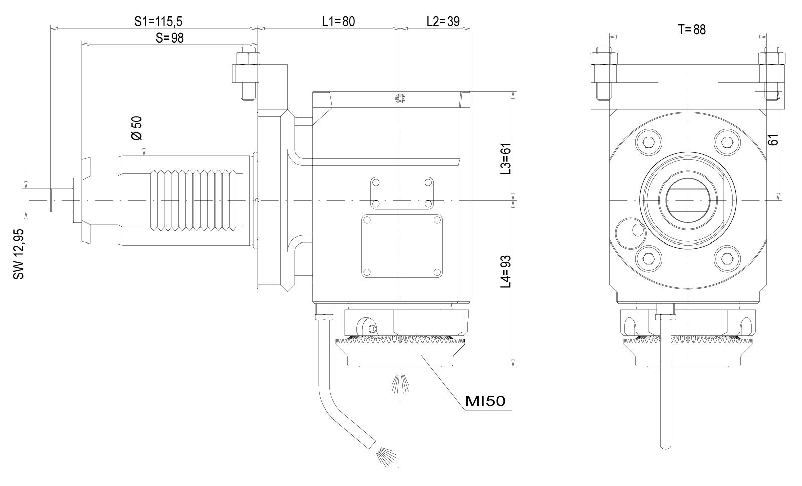Produktinformationen "Angetriebenes Werkzeug VDI50 Winkel-Einheit 90°"