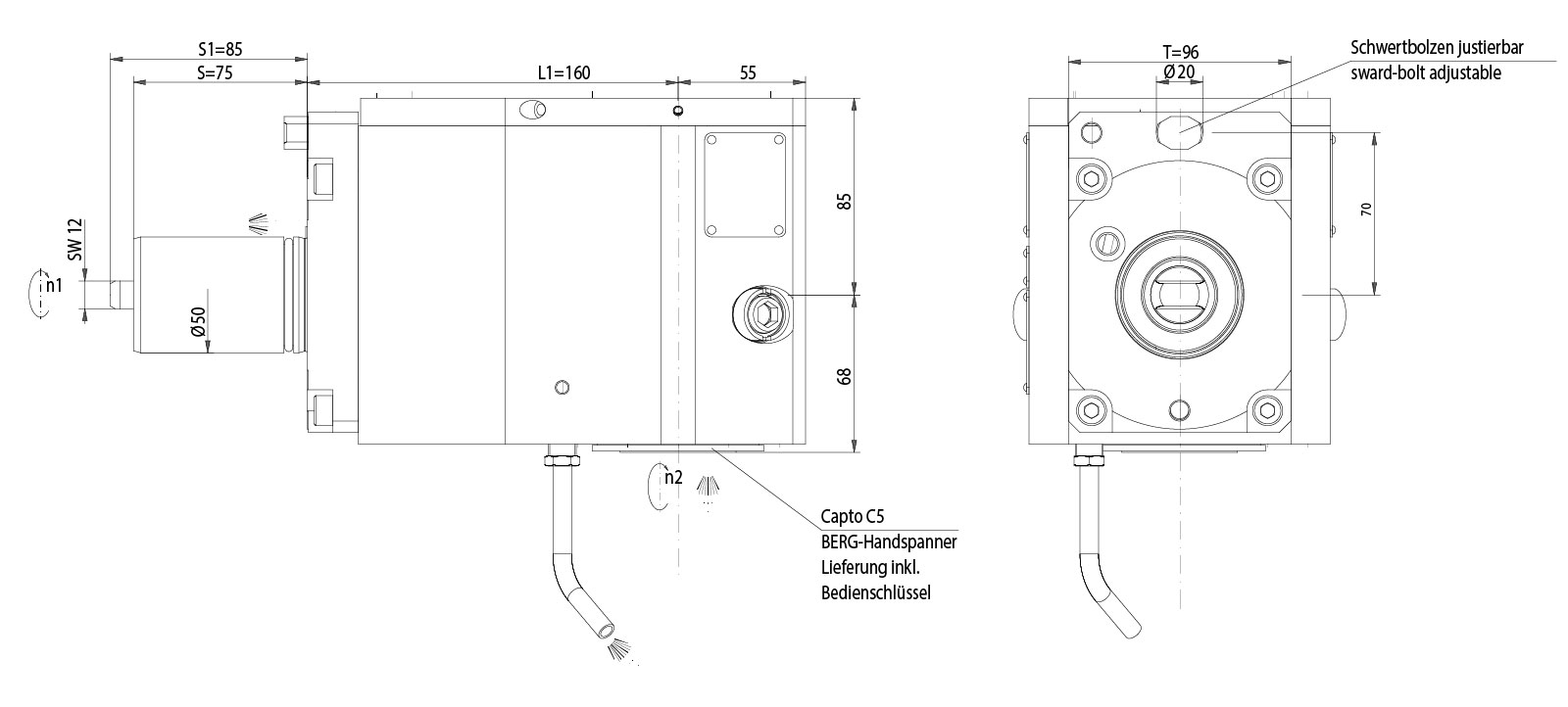 | Ausrichtung: | Spindeleinheit 180° umsetzbar |