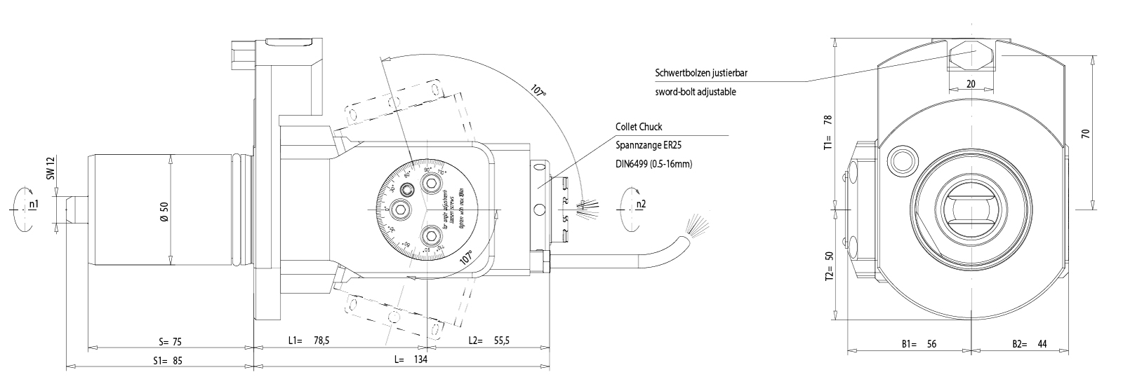 Produktinformationen "Angetriebenes Werkzeug VDI50 Winkelschwenkeinheit +/- 107°"