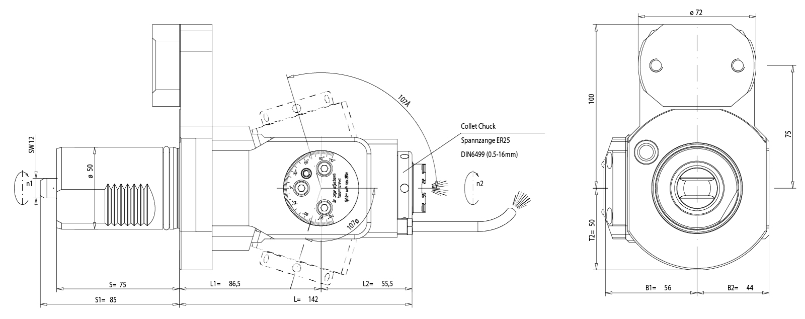 Werkzeugtyp: Winkelschwenkeinheit +/- 107°