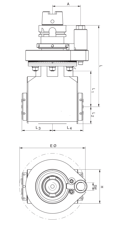 Produktinformationen "Doppel-Winkelkopf 90°, HSK63, Drehmomentabstützung nach ISO9524"