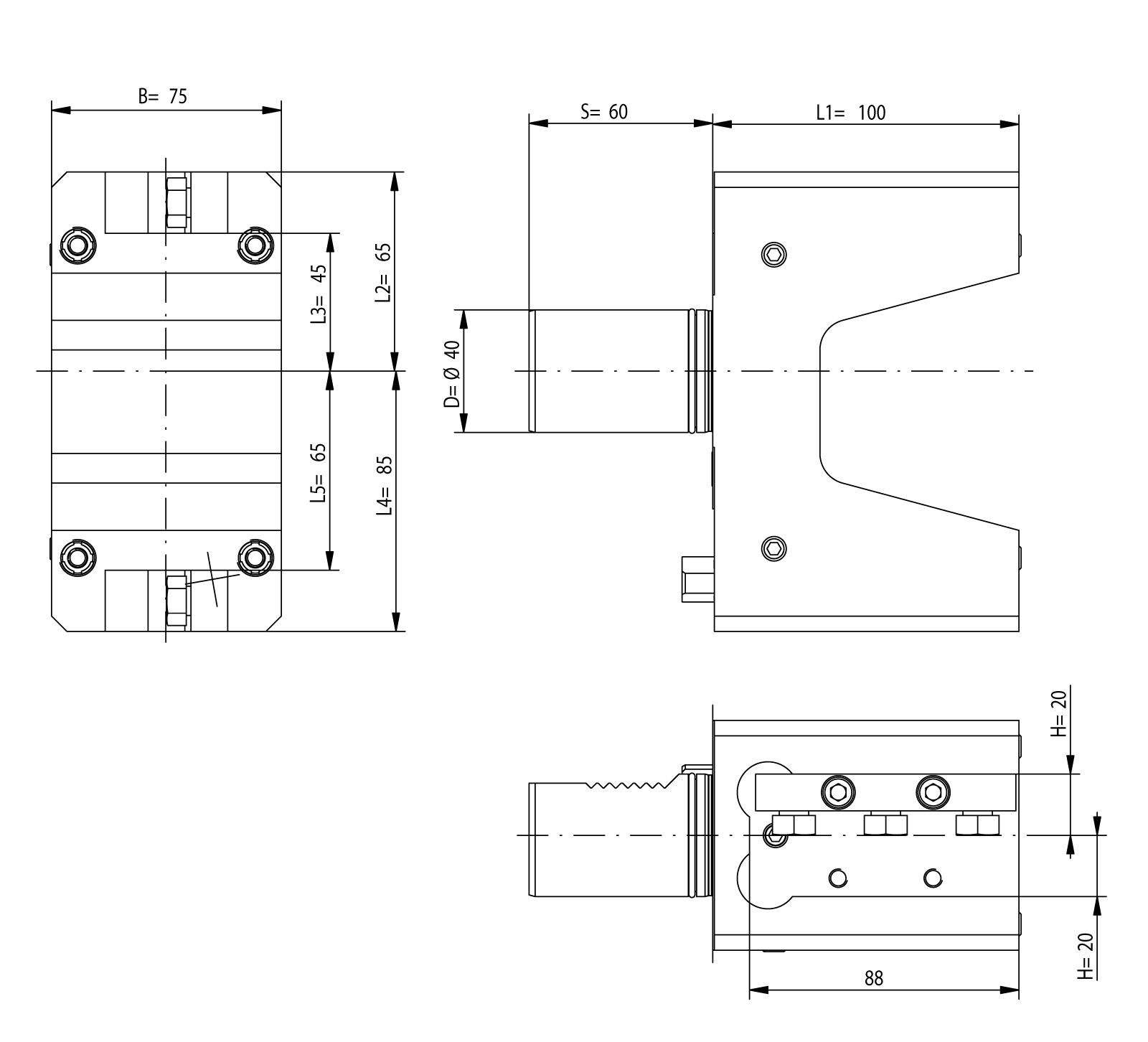 Produktinformationen "Statisches Werkzeug VDI40 Vierkant-Mehrfachaufnahme"