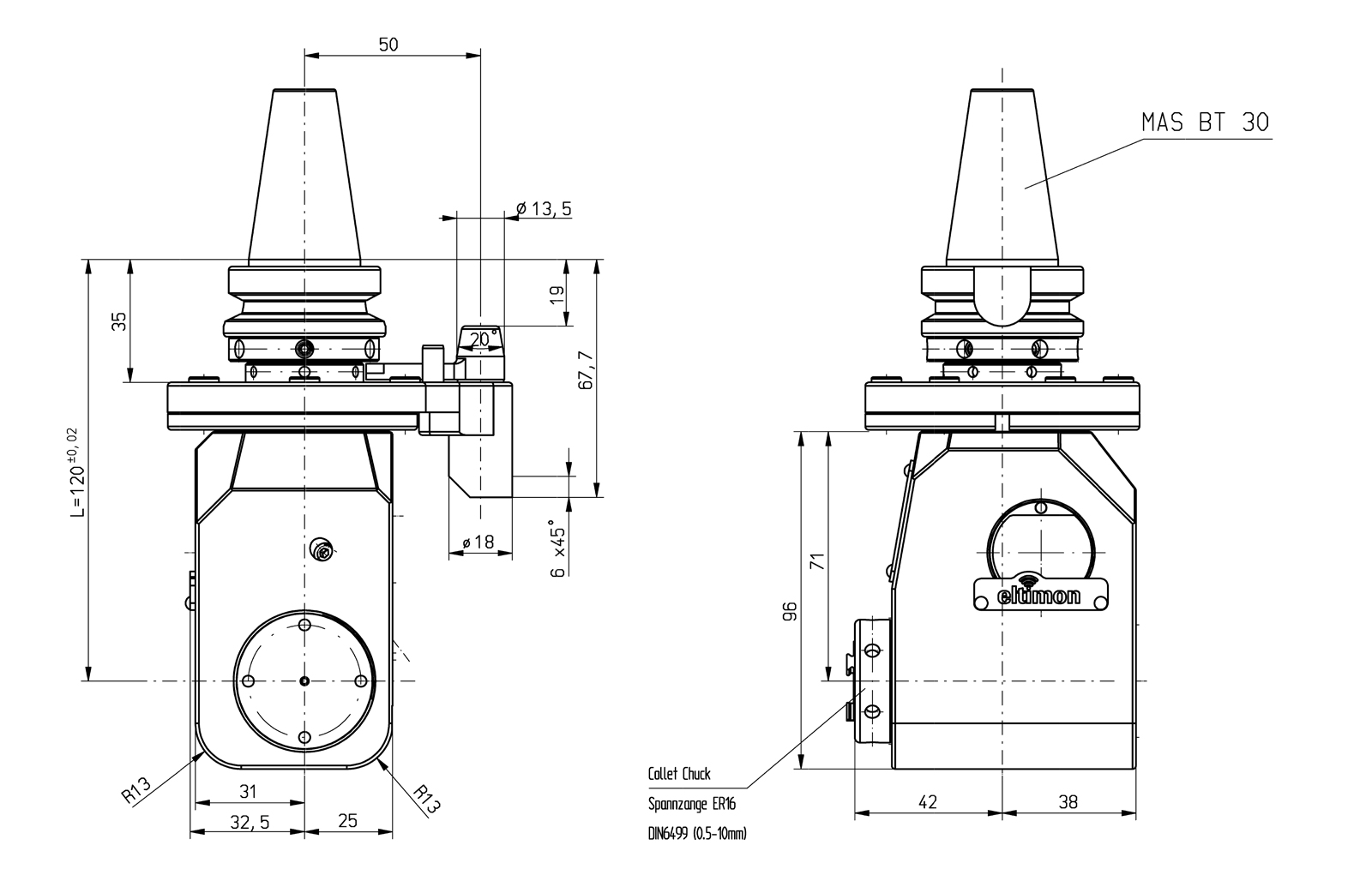 Produktinformationen "Winkelkopf 90°, BT30, für FANUC Robodrill